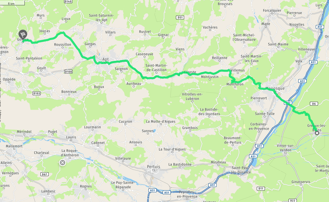 A 80 minutes de Gréoux , petit village célèbre dans le monde pour sa vingtaine de nuances d’ocre rouge de ses anciennes carrières ce qui a d’ailleurs attiré les premiers artistes fascinés par les paysages multicolores