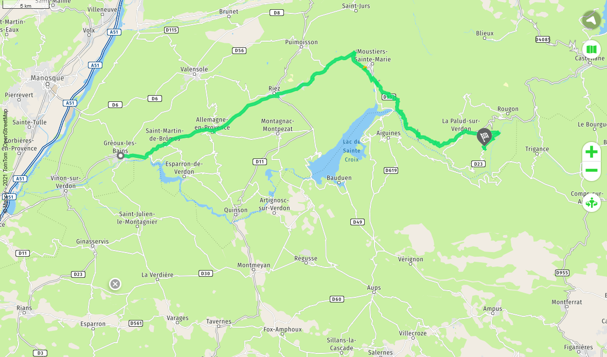 A 1h20 de Gréoux , balade assez rapide et sans difficulté physique , 2 boucles ombragées sont proposées pour quelques Euros . Comptez 30-35 minutes pour la boucle courte et 1h00 pour la boucle longue (celle que nous avons choisi) .